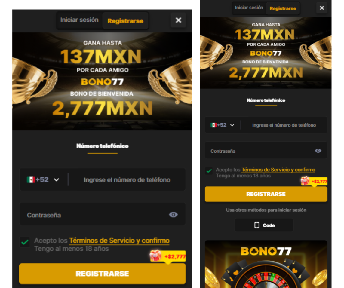 1️⃣ Regístrate en Bono77 desde [este enlace] y recibe tu bono de $2,777 gratis.
